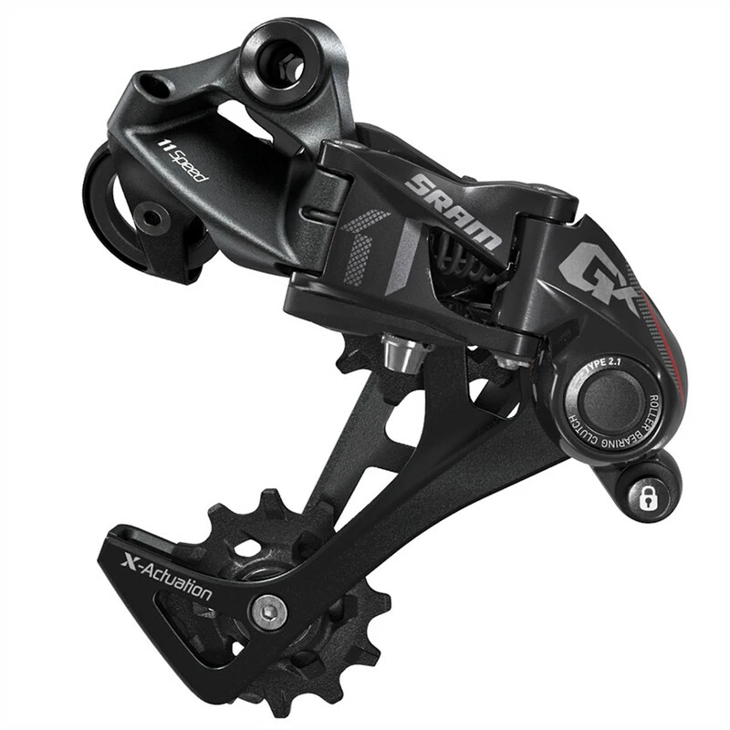 Das Schaltwerk GX X-HORIZON™ ist für geschmeidiges und zuverlässiges Schalten entwickelt worden – vom grösseren Versatz des oberen Schaltwerkröllchens bis zur X-SYNC™-Zahnform und den zwölf Zähnen beider Röllchen. Indem es ungewollte Kettenbewegungen verhindert, schaltet X-HORIZON™ schneller, eliminiert Ghost Shifting und reduziert Kettenschlagen sowie die zum Schalten nötigen Kräfte. Und durch die Technologie CAGE LOCK™ werden Ein- und Ausbau des Hinterrads einfacher denn je.